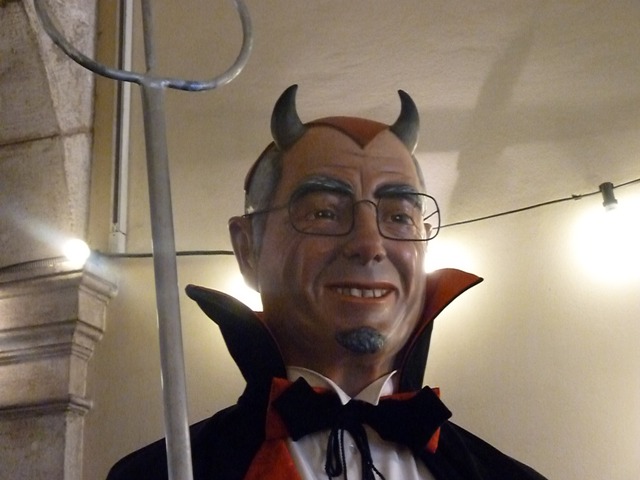Interesantes los dos enanos del barrio del Mercado, por las verrugas que exhiben. Una constante que vemos en otros enanos, como el Cap de Lligamosques de Olot, el Berruga de Figueras y el Cap de Llúpia de Vic (ver artículo de Polichinela aquí). Un rasgo que también encontramos en algunas figuras populares de Italia -como el títere Gianduja de Turín, o el mismo Arlequín- y que se suele interpretar como un «signo diabólico» (lo que quedan de los cuernos del Demonio …).