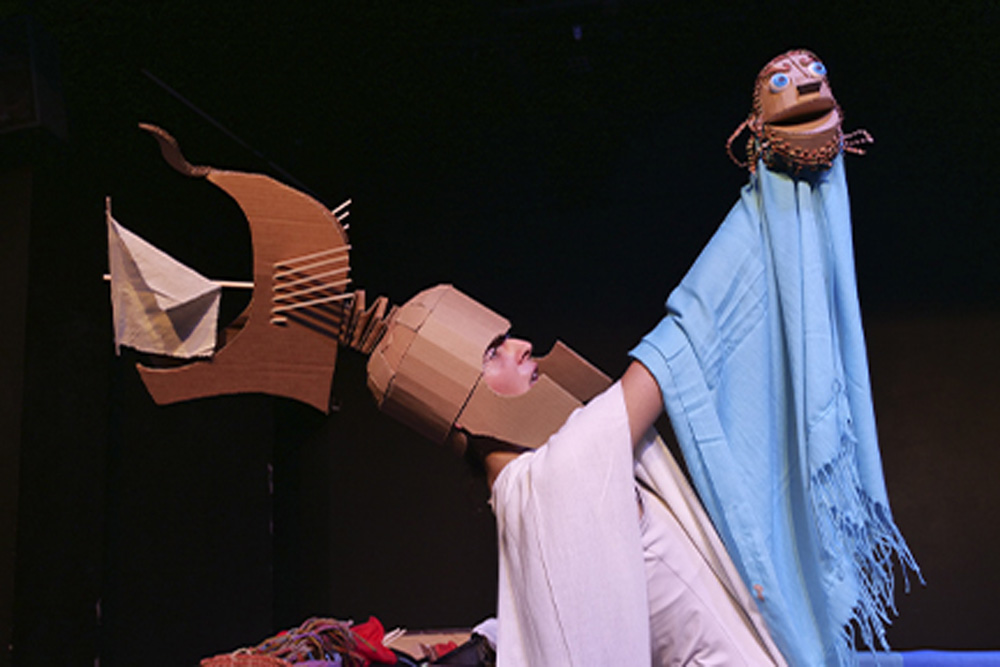 Un reto mayúsculo, que solo puede plantearse si se cuenta con la intérprete capaz de realizar semejante proeza. Pero cuidado, una historia como La Odisea, cuyos capítulos se alargan por el inmenso mar de la Mitología Griega, para ser contada para un público infantil y familiar (niños a partir de 8 años) requiere de una exquisita mirada teatral de síntesis, que sepa además combinar el lenguaje del títere, con la voz y el gesto de la actriz, más las letras de las canciones. Una hazaña dramatúrgica que el autor y director de la obra, Claudio Hochman, ha puesto en pie, aplicando toda su experiencia en el teatro, tras haber dirigido numerosos espectáculos de teatro musical y de actores, y otro tanto con compañías de títeres además de sus propias producciones en este campo.