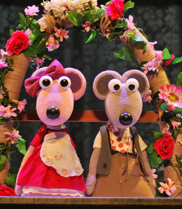 La veterana compañía de Madrid Tropos Teatro, que dirige Guillermo Gil, presentó en la carpa Bagdad su espectáculo La Ratita Presumida, interpretada por él mismo y por la gran animadora de muñecos Esther de Andrea. Dos titiriteros de larga experiencia que saben controlar muy bien la gestualidad y las voces, magníficamente adaptadas estas a los tres personajes principales de la obra: la ratita Martina, el ratón Martín y el señor Don Gato.