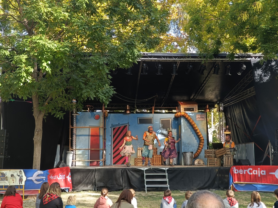 Ambiente de fiesta, uno de los elementos principales que en estos días del Pilar las familias van buscando, y que compañías como Caleidoscopio o la anteriormente mencionada Almozandia han sabido crear con sus espectáculos vistosos, alegres y participativos. El público se lo pasó en grande y los más chicos gozaron de lo lindo.