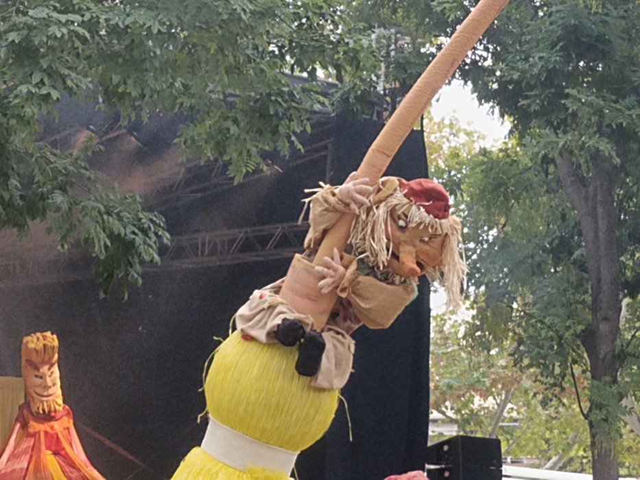 Llegan y bailan con los niños y los mayores que han acudido esta mañana al Parque de las Marionetas, en un pequeño aquelarre infantil donde prevalece la inocencia, la alegría y la bondad de todos con todos. Muñecos de muchos tamaños diferentes encarnan a estos personajes mágicos que tanto agradan a los más pequeños.