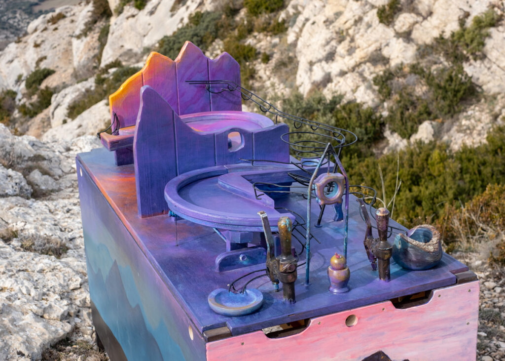 Pirene toma como inspiración las hipnóticas y complejas máquinas de canicas (conocidas como Marble Machines), replanteando su funcionamiento, Están hechas para interactuar con el público a través de elementos mecánicos, creando desafíos de ingenio y habilidad que simulan el camino de ascenso o descenso de una montaña del Pirineo.