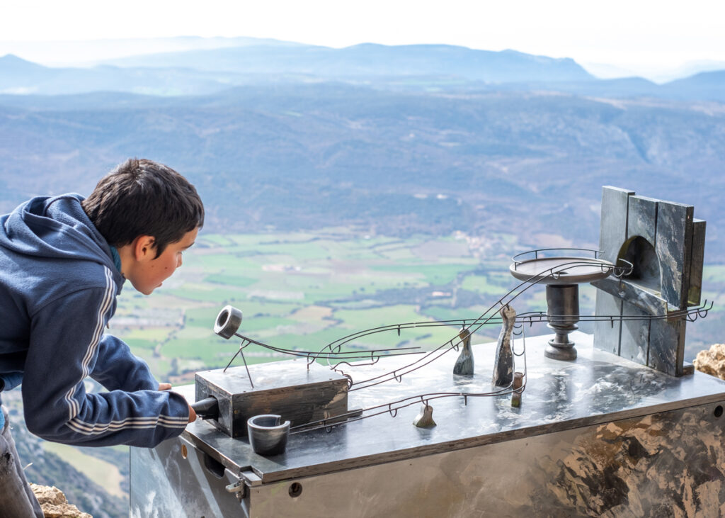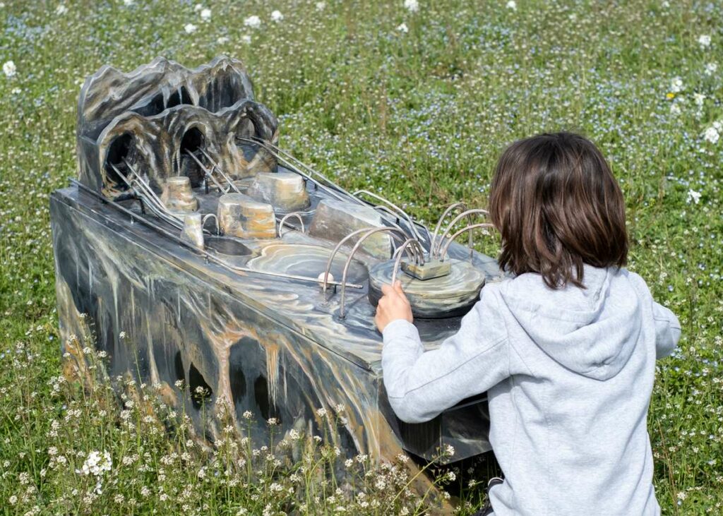 Pirene se presenta como una serie de caminos enigmáticos que solo se resuelven a través de la interacción. Como subir a una montaña, cada elemento de la instalación requiere el deseo de descubrimiento y el esfuerzo de ascender, ya sea a través de un juego o de la manipulación de elementos mecánicos.