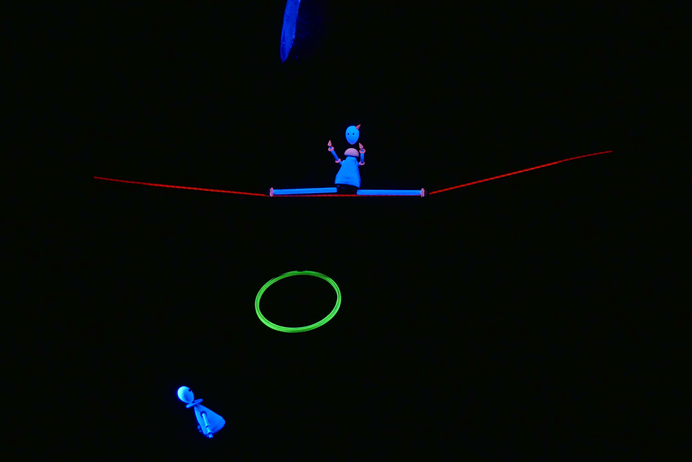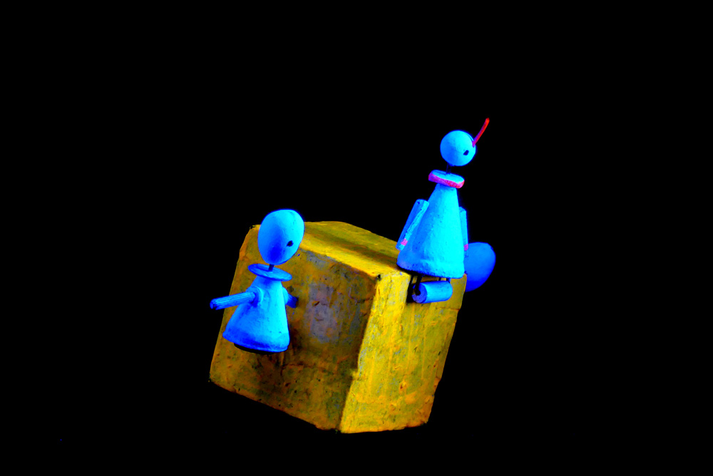 La labor de Pablo Ariel, por su parte, es realmente extraordinaria: erigir un universo visual y sonoro en el que los seres creados por Navarro toman vida y una lógica propia en sus andanzas y movimientos, lógica inventada pues aquí se cumple aquello de que ‘el camino se hace al andar’, para sorpresa y maravilla de los espectadores, que ven algo nuevo, algo que nunca habían visto -o quizá sí, pero en raros estados de conciencia. Pablo, solo con una escueta coreografía de entradas, salidas, subidas, bajadas y unas relaciones que bien podríamos definir como ‘encuentros en la octava dimensión’, por ponerle un número alto, más unas músicas magistralmente bien seleccionadas, nos mostró un saber y una pericia de las que solo se adquieren con el ajetreo de los años.
