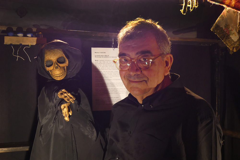 Tonino Murro con La Muerte, dentro del retablo. Foto Jesús M. Atienza