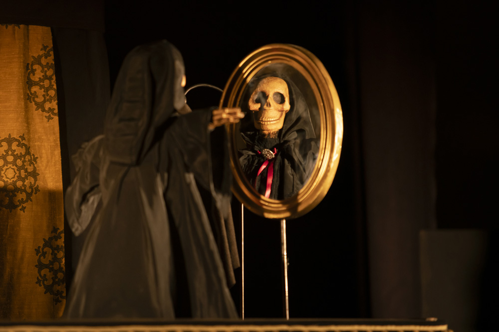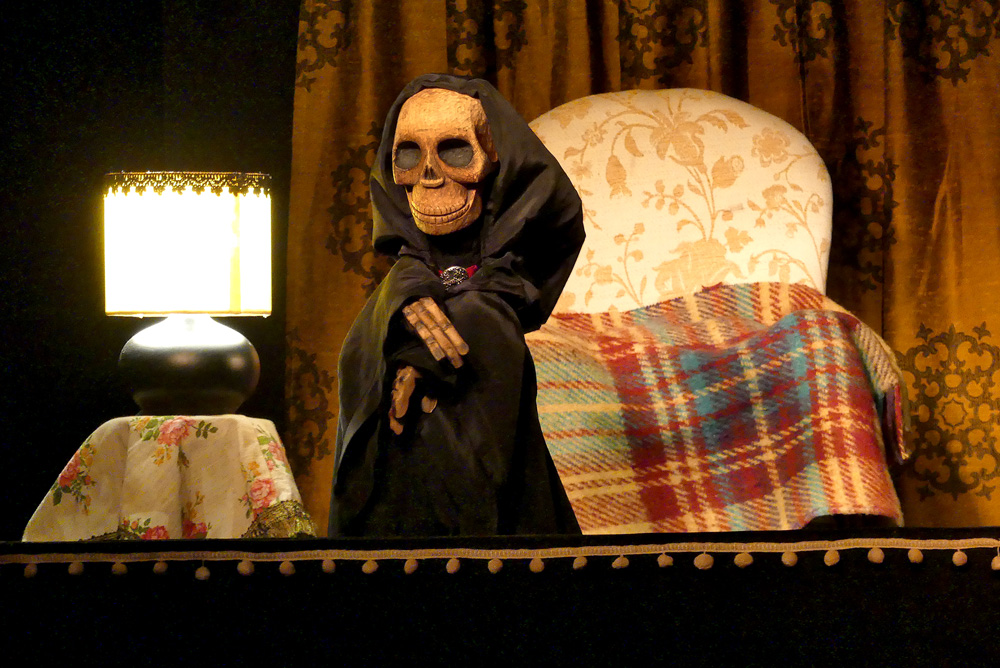 Una marioneta impactante, la de la Muerte, que centra la escena de principio a fin, pues es ella la única que habla, aunque a veces también se dirige al invisible titiritero, más que nada para regañarlo o darle indicaciones.