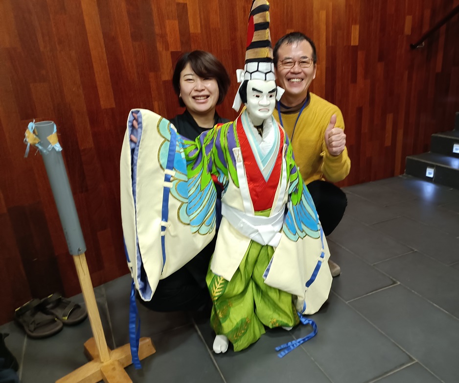 Ritsuko Ishida y Haruhiko Li con la marioneta del Kurama Ningyô. Foto T.R.