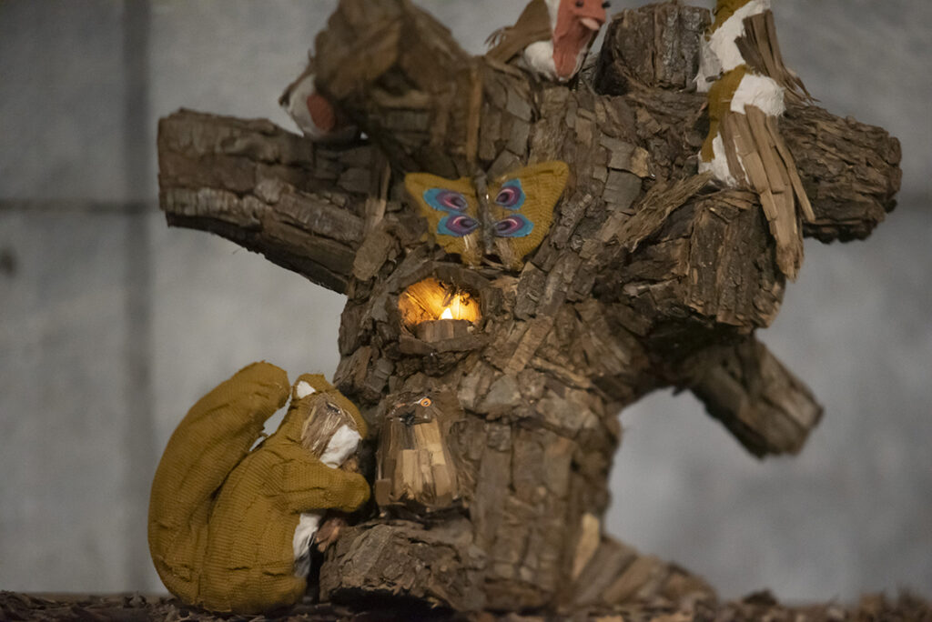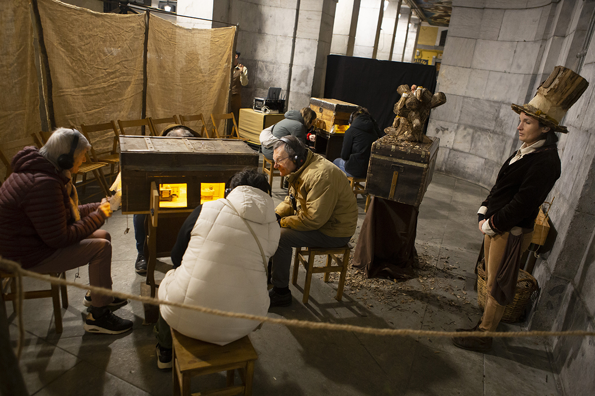 Se pudo ver primero en la Plaza Euskalerria donde se halla el TOPIC, y al día siguiente sobre el gran quiosco de música que corona la llamada Plaza Nueva de Tolosa, este refinado proyecto titulado Arbre (Árbol), obra que mereció recibir el Premio al «Mejor espectáculo singular» en el FETEN 2025. Creado por Carla Lucea, artista, actriz, titiritera y poeta con una larga trayectoria en algunas compañías como l’Imaginari de la Carla, Compañía el Forat del Niu, o Compañía Cap de Pardals, se acompaña en la técnica (muy importante por la complejidad sonora de la misma) de Michaël Lecuyer, codirector y creador de la instalación sonora.