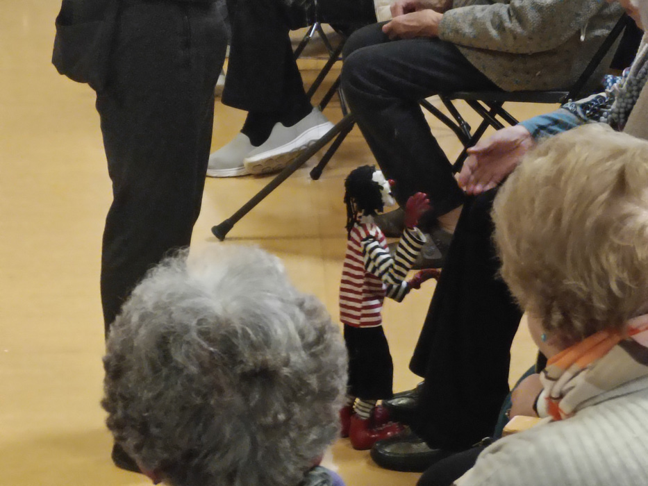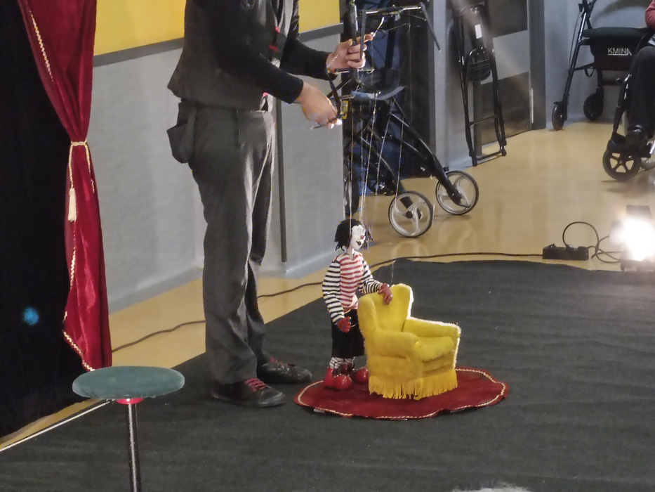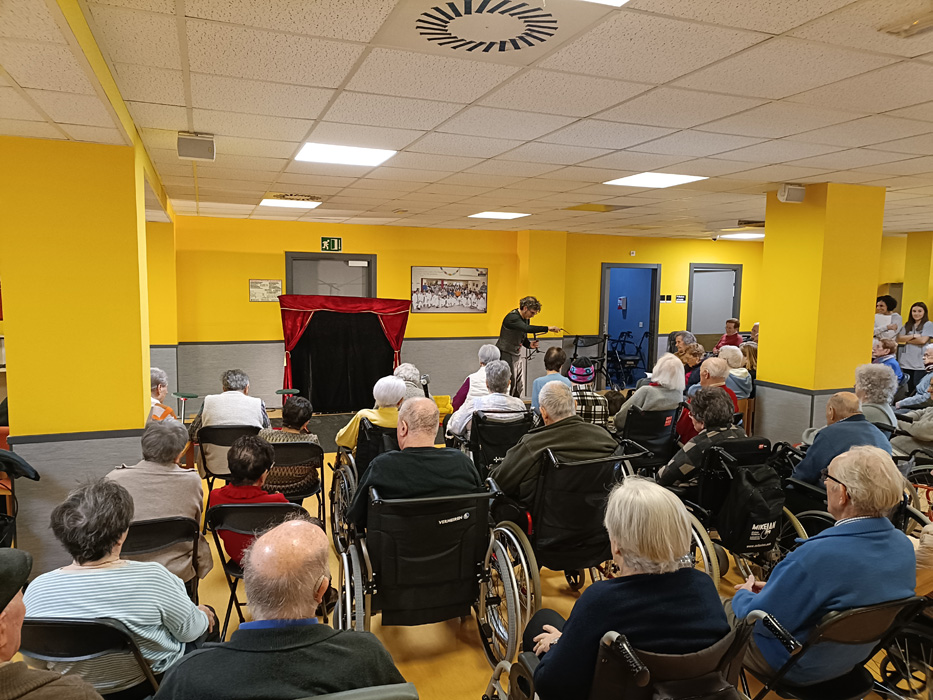 Pero lo más interesante de la sesión en el Complejo Asistencial Uzturre fue ver cómo la marioneta, acercándose a los espectadores, muchos de ellos ancianos en sillas de ruedas, se relacionaba con ellos, despertando sonrisas, carcajadas o pequeños diálogos.