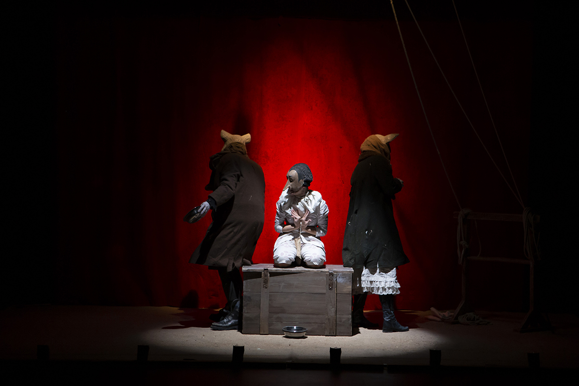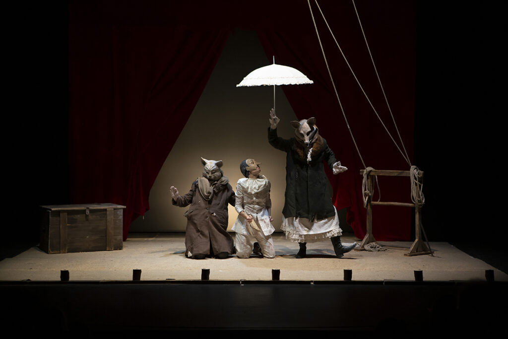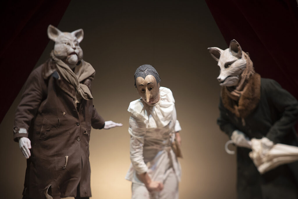 Aunque los otros dos personajes principales, el Gato y el Zorro, interpretados por Gianluca Gabriel y Enrica Zampetti, cuyos movimientos también nos remiten a figuras de la Comedia del Arte como Il Capitano o cualquier otro de las máscaras gruñonas de la Comedia del Arte, se elevan también a unas categorías de altísima calidad, con una capacidad única de transformismo, por lo que han recibido importantes premios.
