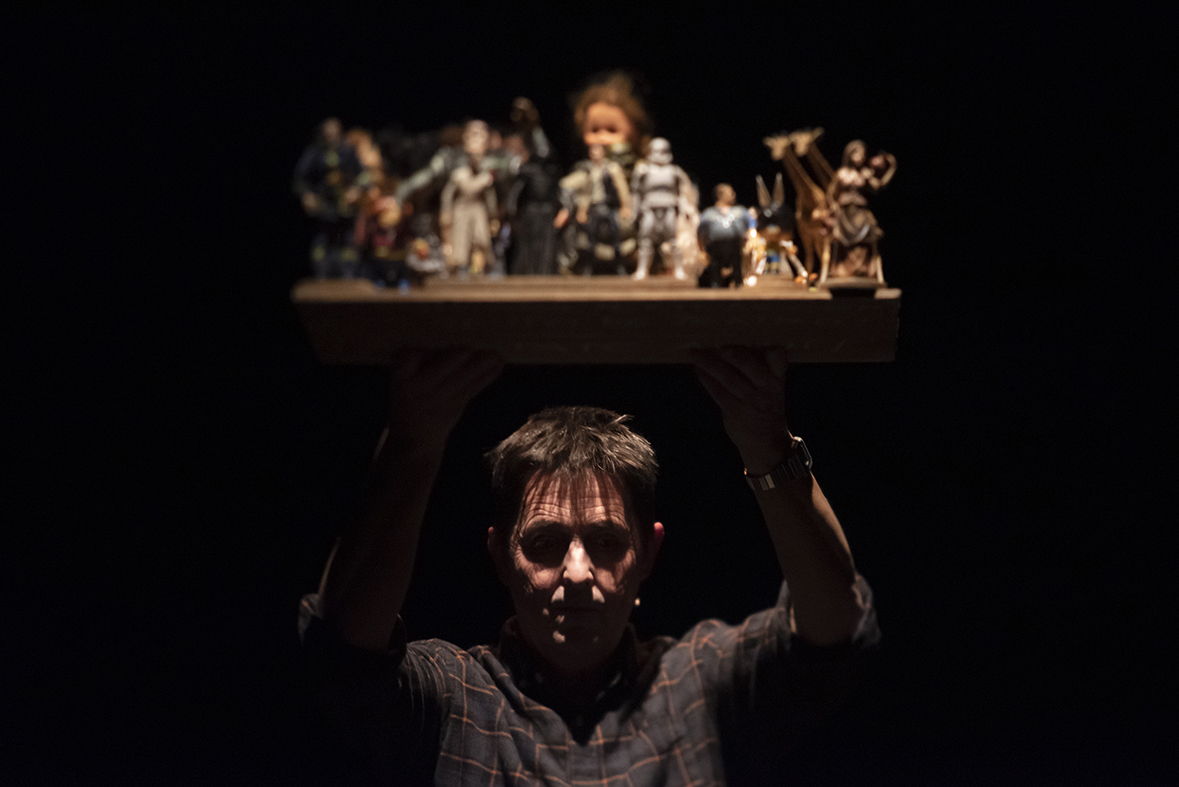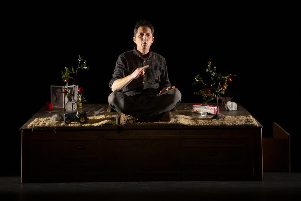 Pero que no se asuste el lector, todo eso lo hace Molins bien arropado por el oficio que otorga una vida dedicada al teatro: el dominio de la palabra, los tiempos que rigen cada una de las situaciones presentadas, protegido por su quehacer diario en los escenarios. Y para conseguirlo, el director que es Molins se ha rodeado de otros tres directores de peso: el reconocido Jokin Oregi del País Vasco, y los riojanos Julián Sánez-López y Izaskun Fernández, de la prestigiosa compañía El Patio. Una propuesta que, cómo explicaron al acabar la función en el ambigú del TOPIC, surgió por azar en un festival de Mallorca. Pudo así Ramon Molins distanciarse de sí mismo al tener enfrente a tres directores volcados en la idea y cuyo magnífico resultado solo se explica por la generosa sintonía que los cuatro alcanzaron, un caso insólito de entrega y entusiasmo por el proyecto.