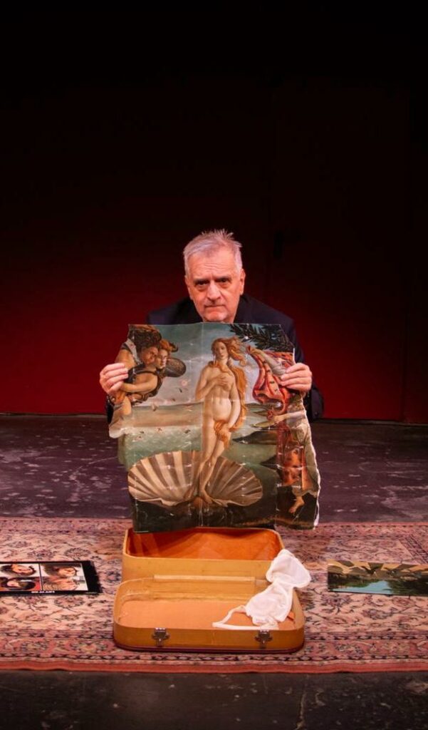 Y ya de entrada constatamos el enorme oficio teatral que desvela Ortega al presentarse en el escenario casi a palo seco: una silla, una maletita y una pelota. Y un mundo de detalles y objetos fetichistas, que vemos solo con la imaginación y con la palabra del actor, que permiten explicar una época y sus grandes cambios inherentes sin recurrir a frases desmedidas. Una humildad pues de partida en la misma forma de explicarnos una época y una vida, que creo es el gran logro de la obra.