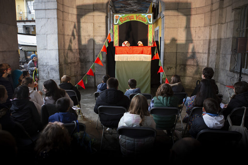 Aun viviendo en Galicia y trabajando allí en gallego, Larraitz es una vasca nacida en Tolosa con muchas ganas de presentar en su tierra natal a Doña Barriga Verde. Por fin su deseo se realizó, actuando en la Plaza misma del TOPIC, donde sin duda sorprendió y encandiló al entendido público tolosano.