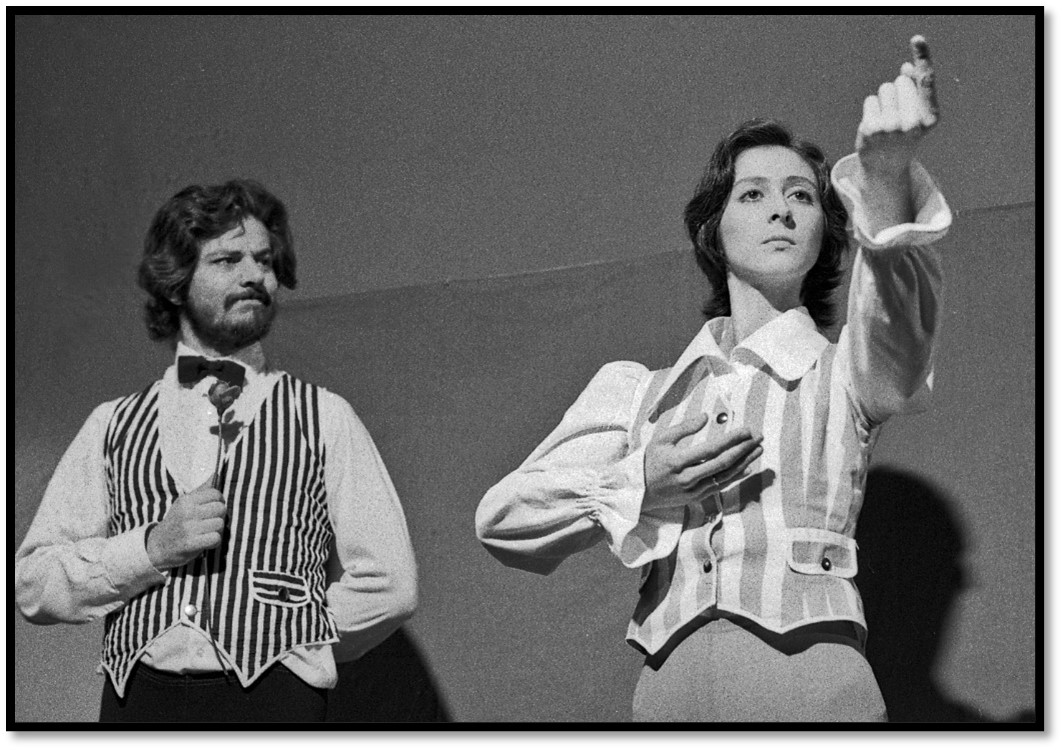 Luis y Adriana con su obra de pantomima en el Patronato Obrero de Sestao en 1977 (Foto de Nati Cuevas)