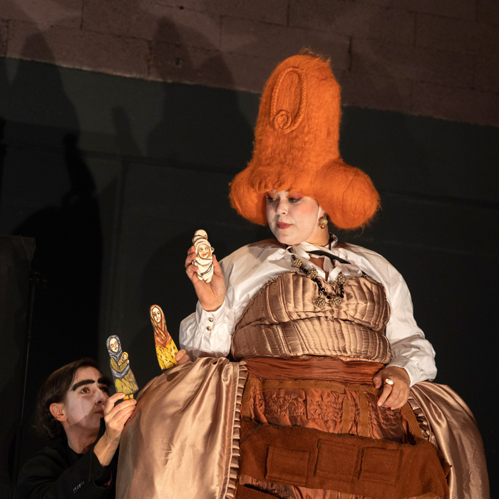 Otros proyectos trabajan a mayor escala. Así, el espectáculo Rezavá Anna aneb Zač je toho kost! / Ana Oxidada – ¡Basta ya! de la compañía Geisslers Hofcomoedianten. La marioneta interviene sin aviso en un escenario que había comenzado como puro juego de actores. Los dos personajes son muy contrastantes: uno seco y delgado, como un día de ayuno; el otro jovial, redondo, con peluca naranja exuberante y una enorme crinolina que balancea con energía.