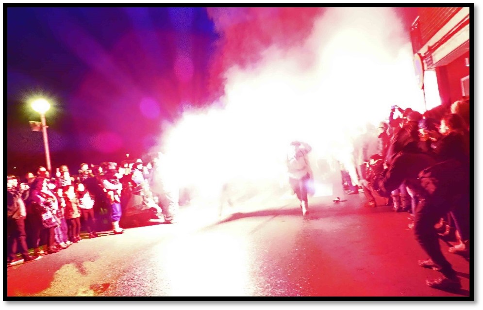 En la plaza culmina el carnaval con rituales de sorgiñas, danzas, fuego, sangre y bengalas en una explosión de júbilo (Foto de F. G.)