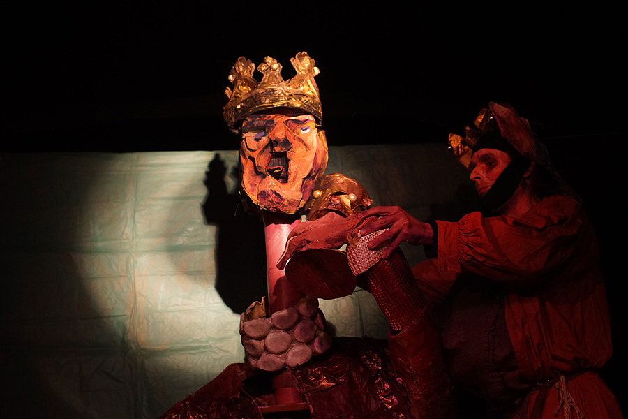 Y así vemos como en el escenario se va desplegando el mundo interior de este bufón, que necesita a su Rey para poderlo servir y a la vez burlarse de él y decapitarlo si cabe, buscando satisfacer sus deseos más profundos y arraigados. Recuerda los viejos usos bufonescos, la obligación de entretener contando historias, que son tan ásperas y oscuras como lo es el entorno del que surgen.